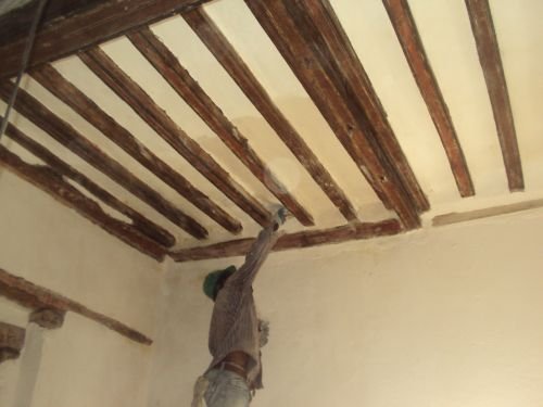 🔹 Application de peinture à la chaux dans deux pièces restaurées au rez-de-chaussée.